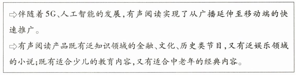 9.(新趋势.观点评析)2024年世界读书日来临之际,某晚报刊登了关于某省有声阅读发展情况的专题报道。以下为该报道的内容摘要。
