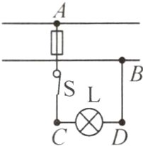 4. 如图所示,闭合开关S后,发现电灯L不亮,且保险丝没有熔断.某同学用验电笔测试电路中的C、D两点,发现这两处都能使验电笔的氖管发光;再用验电笔测试火线上A点和零线上B点时,氖管在测A点时能发光,在测B点时不发光.那么可以判定故障是电路中的________(选填“AC”“CD"或“BD")段________(选填“短路”或“开路").