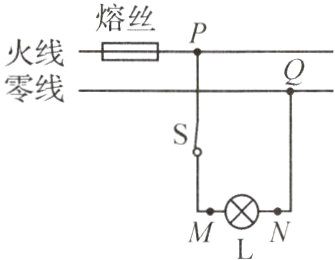 1. (镇江中考)如图所示,闭合开关S,发现灯L不亮,用验电笔接触M点时氖管发光,而接触N、Q点时氖管均不发光.若仅有一处发生开路,则该处可能是 ( )