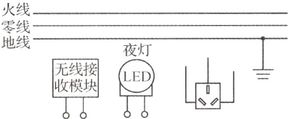 11. 21世纪智能家居诞生,人们购买了一种可以遥控的LED夜灯,利用无线接收模块来控制LED夜灯,请将可遥控的LED夜灯和三孔插座接入照明电路中.