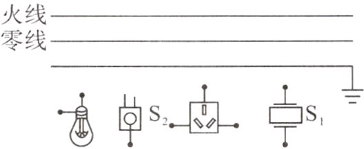 12. 宾馆内常使用房卡,它相当于一个开关,只有房卡插入槽里,房间内的灯和插座才能工作.如图是房间内的器件图,S是房卡开关、S2是控制灯的开关.为使灯和插座正常工作,请你用笔画线代替导线将各器件正确连入电路中.