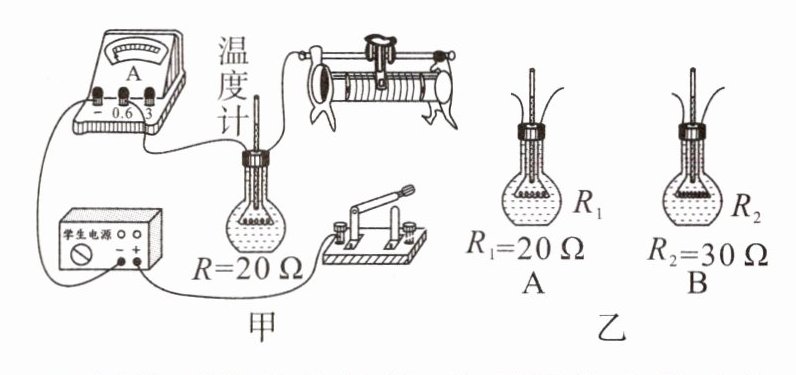 (5)若要探究电流通过导体产生的热量与电阻的关系,可选择图乙中______(选填“A"或“B")烧瓶中的电阻与图甲烧瓶中的电阻______(选填“串”或“并”)联进行实验。