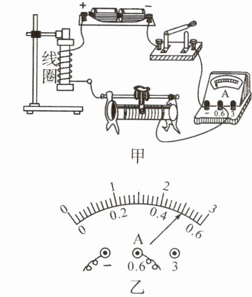 (2)闭合开关,调节滑片位置,电流表的指针如图乙所示,则电流表的示数为________A,此时通电螺线管的下端是______(选填“N”或“S”)极.