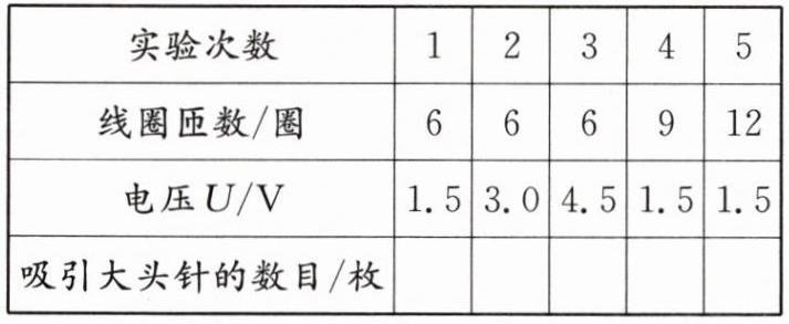 (2)电磁铁磁性的强弱与电磁铁两端的电压和线圈的匝数之间的关系