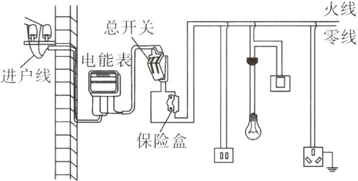 4. (常德中考)如图所示为家庭电路的简化电路图,若该电路中各处的连接都是正确的,则关于该家庭电路下列说法中正确的是( )