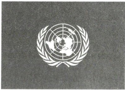 材料二 联合国旗帜正中是一个白色的联合国徽记。徽记是一张以北极中心的世界地图等距离方位投影,由橄榄枝组成的花环相托,象征世界和平。