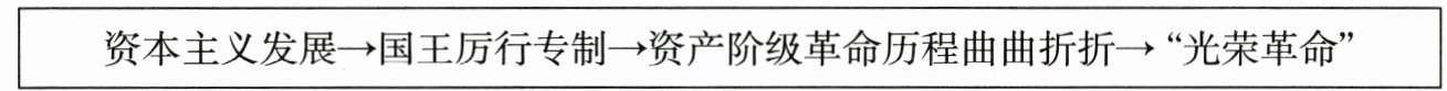 B 【解析】依据题干并结合所学知识可知,英国资产阶级革命爆发的根本原因是资本主义发展,故①正确;1689 年《权利法案》颁布后,英国君主立宪制逐渐确立,材料并未体现,故②错误;题干所给材料反映了“光荣革命”是英国资产阶级革命结束的标志,故③正确;题干所给材料也说明英国资产阶级革命具有曲折性,故④正确。故选 B。