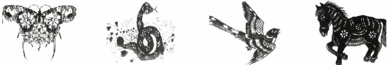 27.窗花是我国古老的传统民间艺术之一,它具有鲜明的中国民俗情趣和艺术特色。如图为几种常见动物的窗花图案,请回答下列相关问题。(5分)