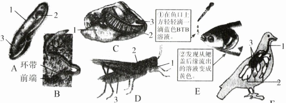 (2)蚯蚓靠湿润的体壁进行呼吸 2 鳃 3 气门