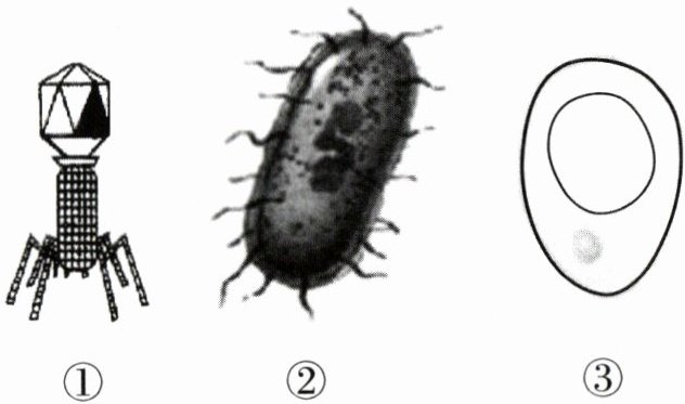 A 题图中②细菌细胞内没有成形的细胞核,无叶绿体,不能制造有机物,营养方式是异养;③酵母菌是单细胞真菌,有成形的细胞核;①病毒没有细胞结构,不能独立生活,只能寄生在其他生物的活细胞中。