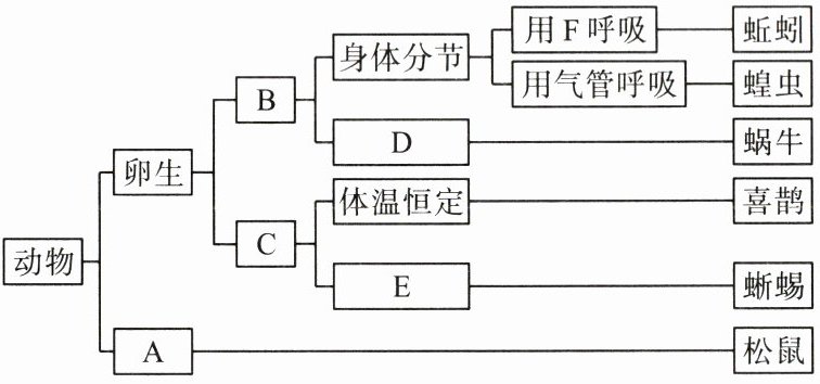 (2)资料二的A处应填写 ______,C、F处应分别填写 __________。蝗虫的运动器官是 ______。将蝗虫、喜鹊、蜥蜴、松鼠所属的类群从低等到高等排序是______________________________。
