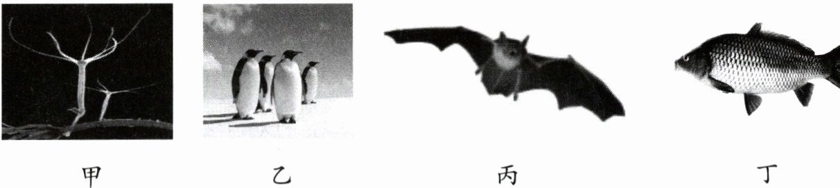 D.乙、丙、丁体内都有由脊椎骨组成的脊柱
