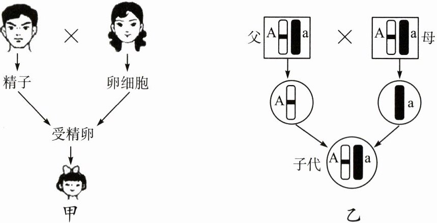 17.(恩施州中考)图中甲表示人的生殖过程,乙表示伴随生殖过程中控制某一相对性状的基因(在一对染色体上)的传递过程。请据图回答下列问题。(15分)