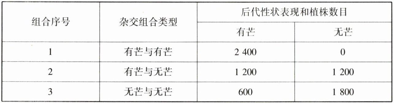 (1)无芒 3 有芒 (2)aa aa Aa (3)1200 50% (4)无芒和有芒 75%