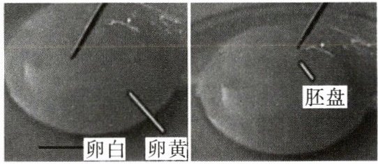19.根据观察鸡蛋的结构实验和右图,回答下列问题。(15分)
