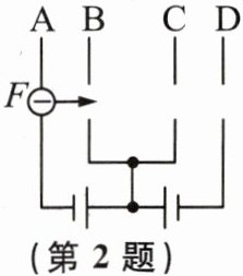 2. 如图所示,从F处释放一个无初速的电子(不计重力)向B板方向运动.下列对电子运动的描述中错误的是(设电源电动势为U)( )
