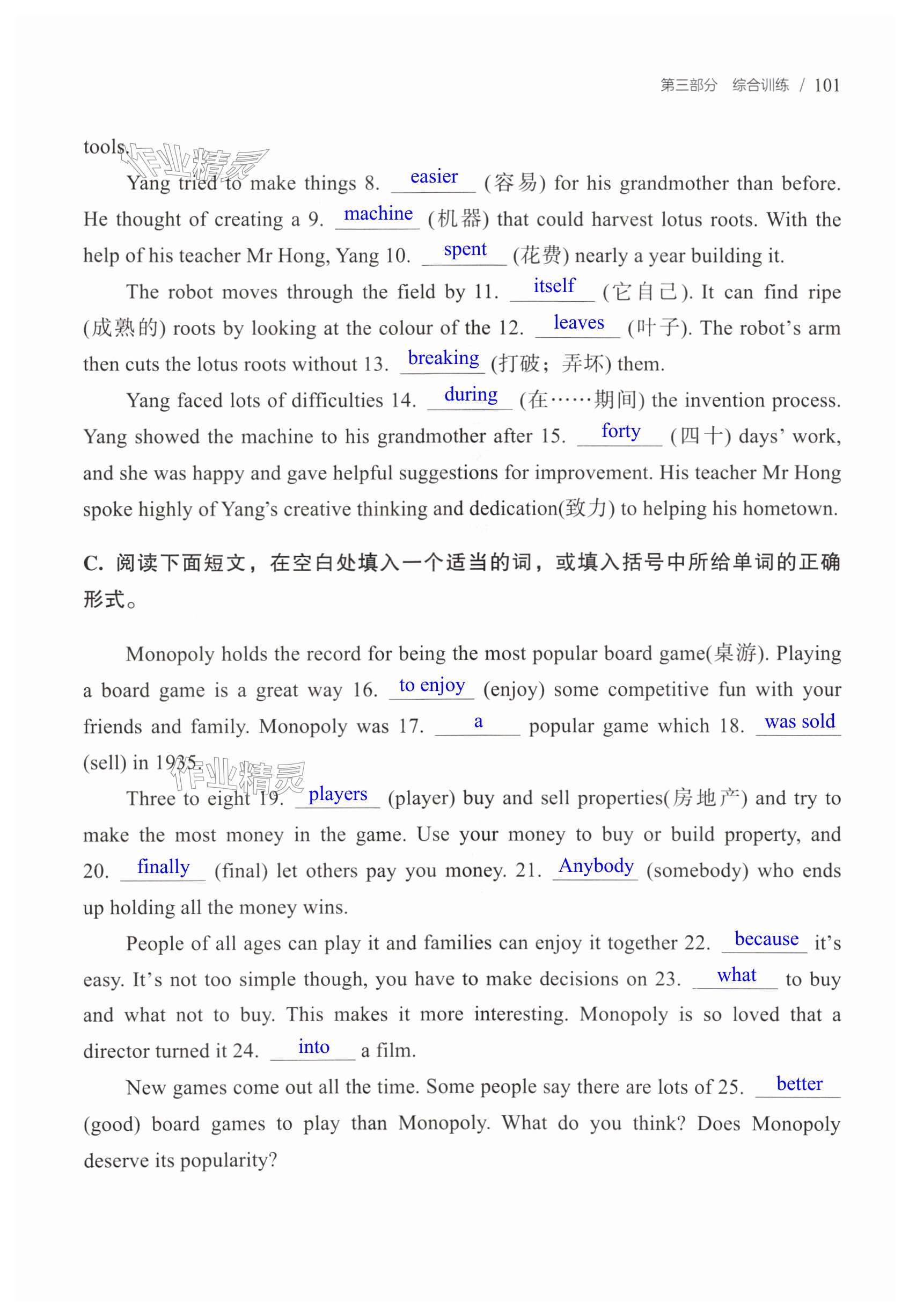 注:目前有些书本章节名称可能整理的还不是很完善,但都是按照顺序排列的,请同学们按照顺序仔细查找。练习册 2025年学而优中考英语词汇运用与语法填空精练 答案主要是用来给同学们做完题方便对答案用的,请勿直接抄袭。