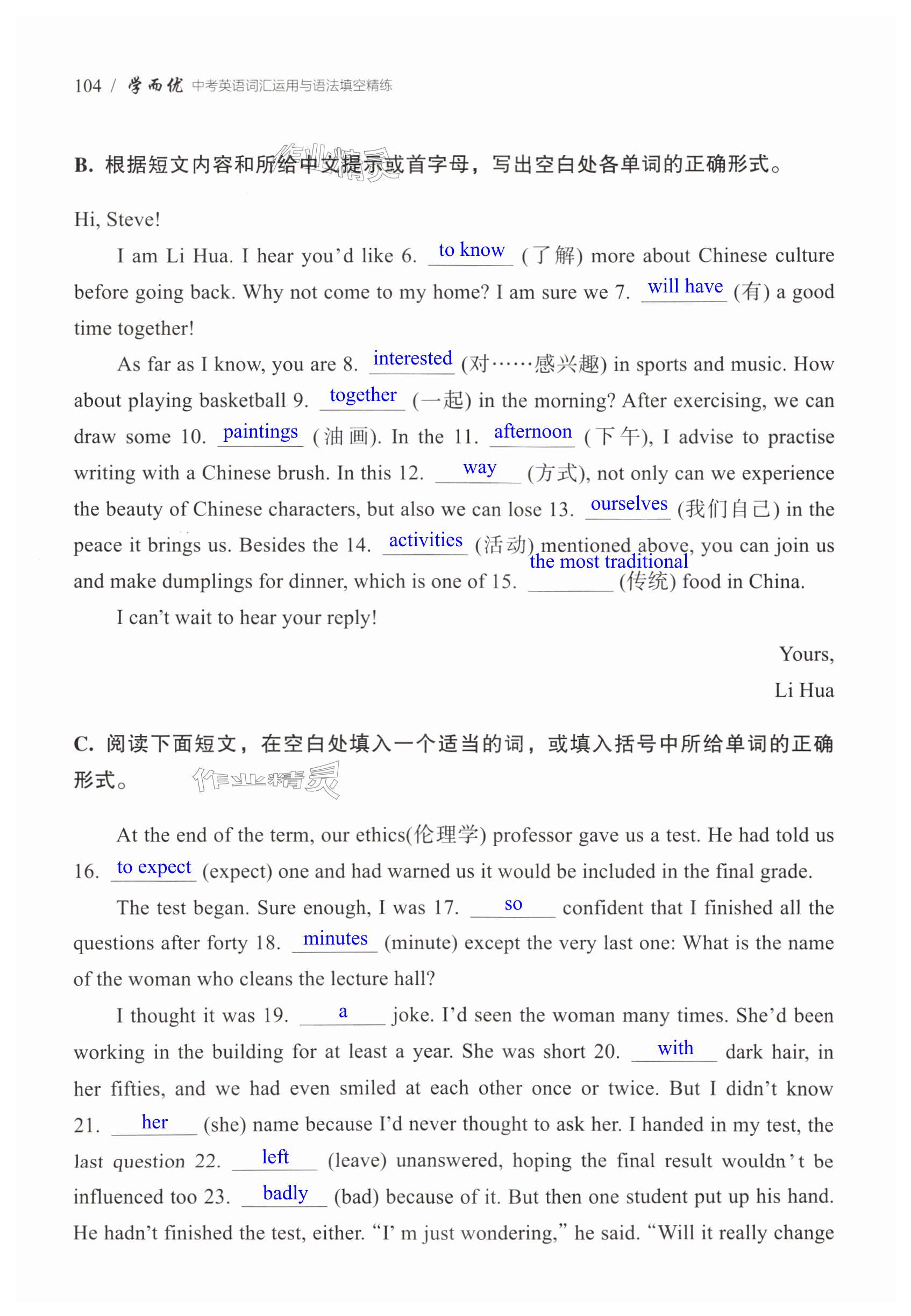注:目前有些书本章节名称可能整理的还不是很完善,但都是按照顺序排列的,请同学们按照顺序仔细查找。练习册 2025年学而优中考英语词汇运用与语法填空精练 答案主要是用来给同学们做完题方便对答案用的,请勿直接抄袭。