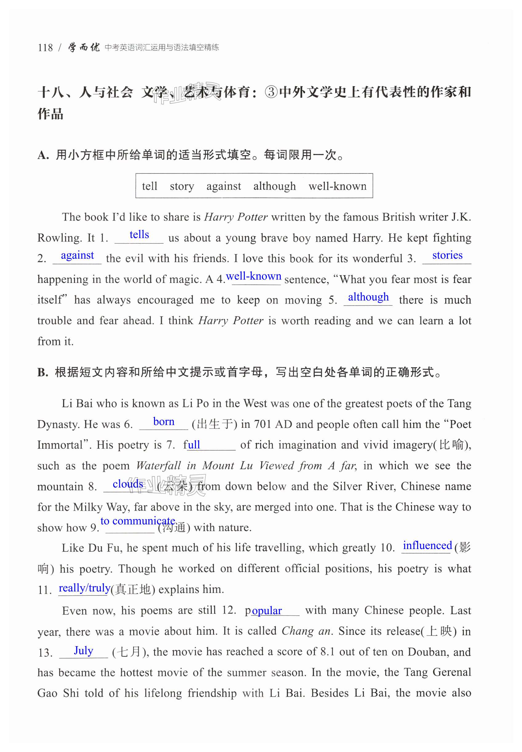 注:目前有些书本章节名称可能整理的还不是很完善,但都是按照顺序排列的,请同学们按照顺序仔细查找。练习册 2025年学而优中考英语词汇运用与语法填空精练 答案主要是用来给同学们做完题方便对答案用的,请勿直接抄袭。