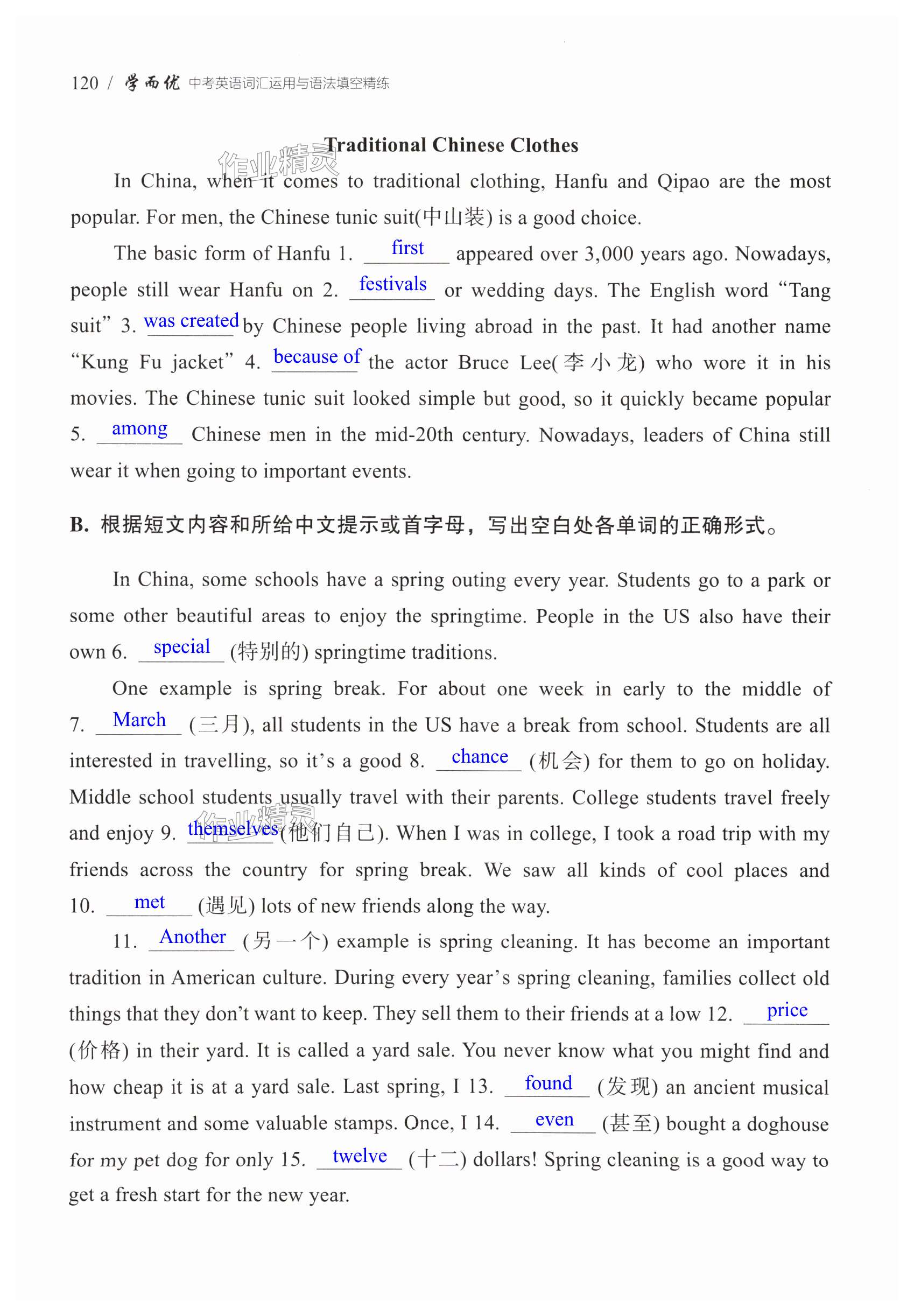 注:目前有些书本章节名称可能整理的还不是很完善,但都是按照顺序排列的,请同学们按照顺序仔细查找。练习册 2025年学而优中考英语词汇运用与语法填空精练 答案主要是用来给同学们做完题方便对答案用的,请勿直接抄袭。