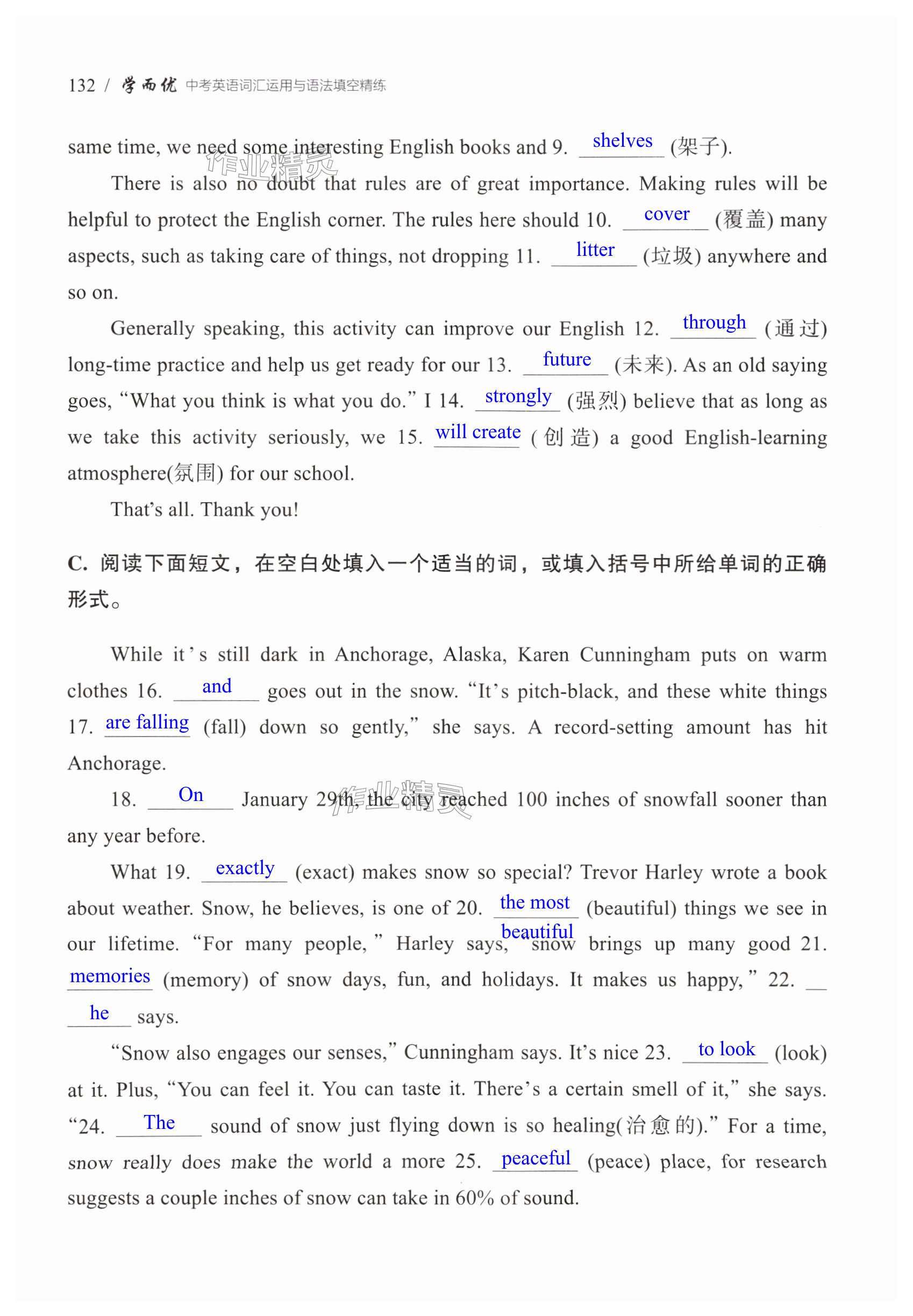 注:目前有些书本章节名称可能整理的还不是很完善,但都是按照顺序排列的,请同学们按照顺序仔细查找。练习册 2025年学而优中考英语词汇运用与语法填空精练 答案主要是用来给同学们做完题方便对答案用的,请勿直接抄袭。