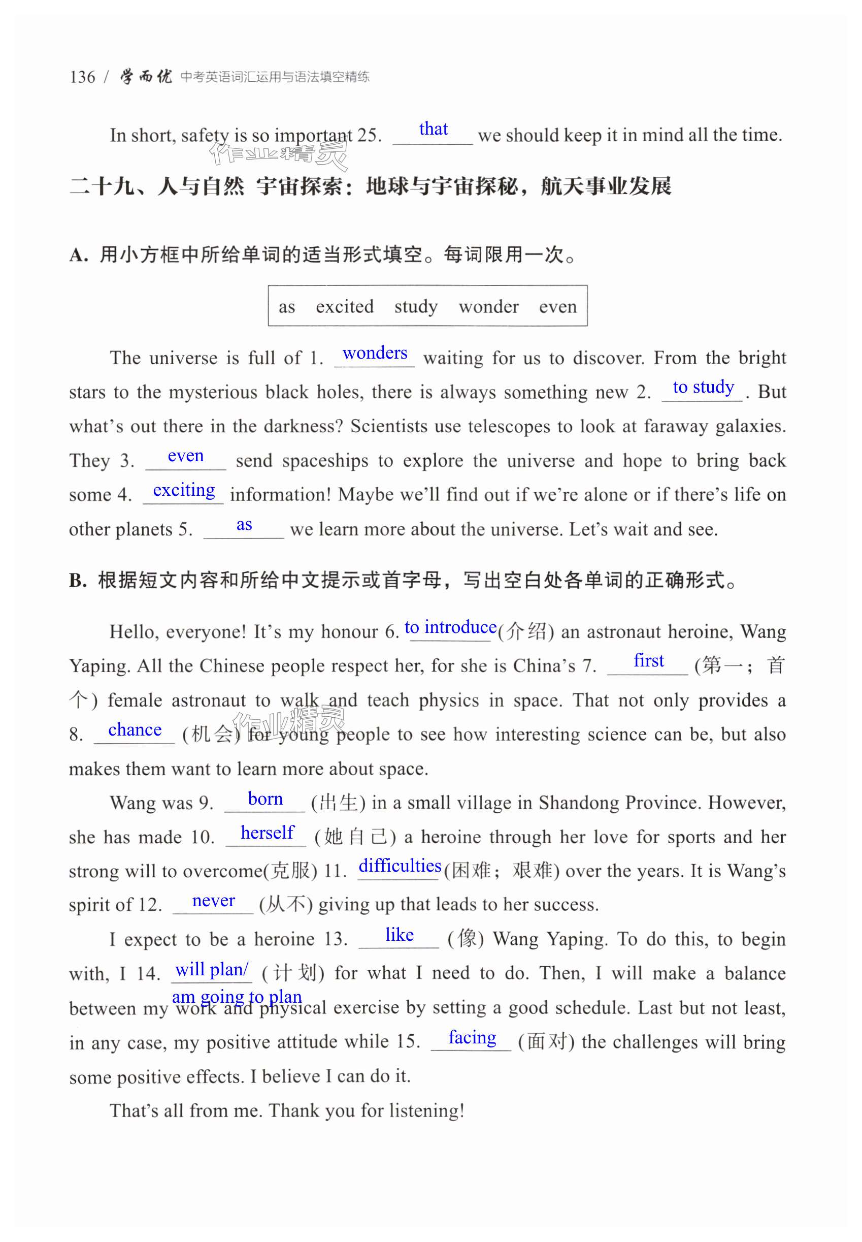 注:目前有些书本章节名称可能整理的还不是很完善,但都是按照顺序排列的,请同学们按照顺序仔细查找。练习册 2025年学而优中考英语词汇运用与语法填空精练 答案主要是用来给同学们做完题方便对答案用的,请勿直接抄袭。
