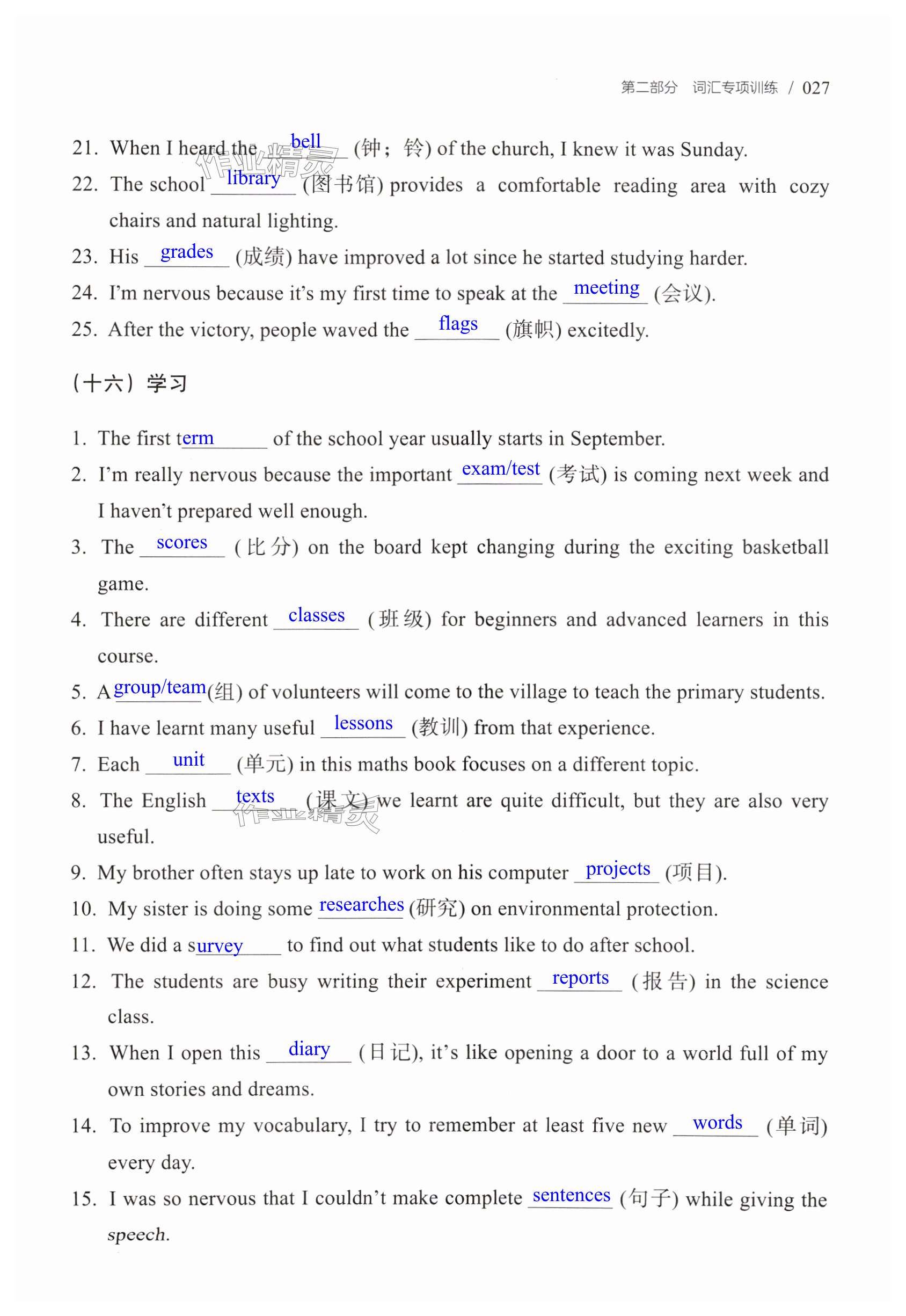 注:目前有些书本章节名称可能整理的还不是很完善,但都是按照顺序排列的,请同学们按照顺序仔细查找。练习册 2025年学而优中考英语词汇运用与语法填空精练 答案主要是用来给同学们做完题方便对答案用的,请勿直接抄袭。