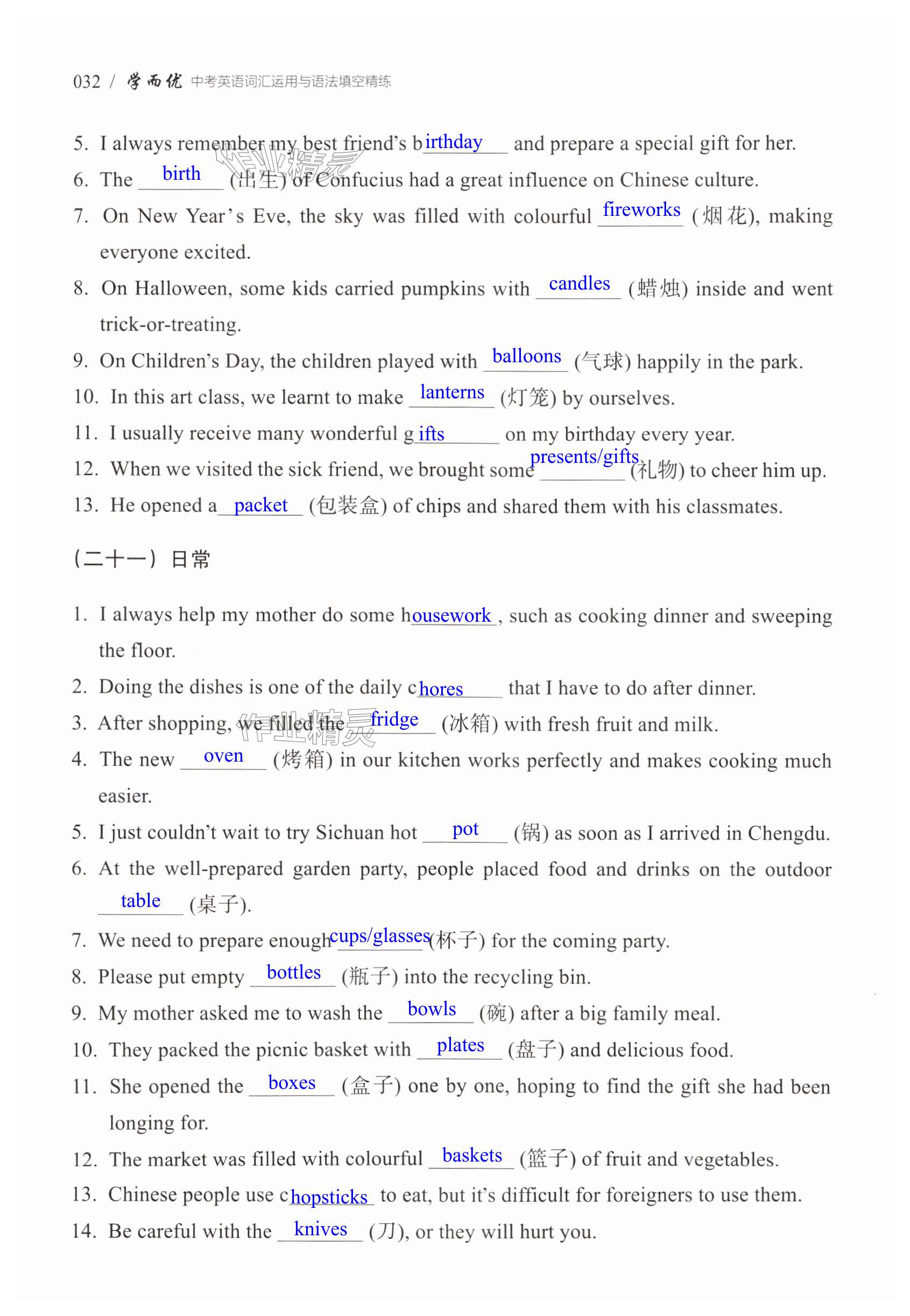 注:目前有些书本章节名称可能整理的还不是很完善,但都是按照顺序排列的,请同学们按照顺序仔细查找。练习册 2025年学而优中考英语词汇运用与语法填空精练 答案主要是用来给同学们做完题方便对答案用的,请勿直接抄袭。