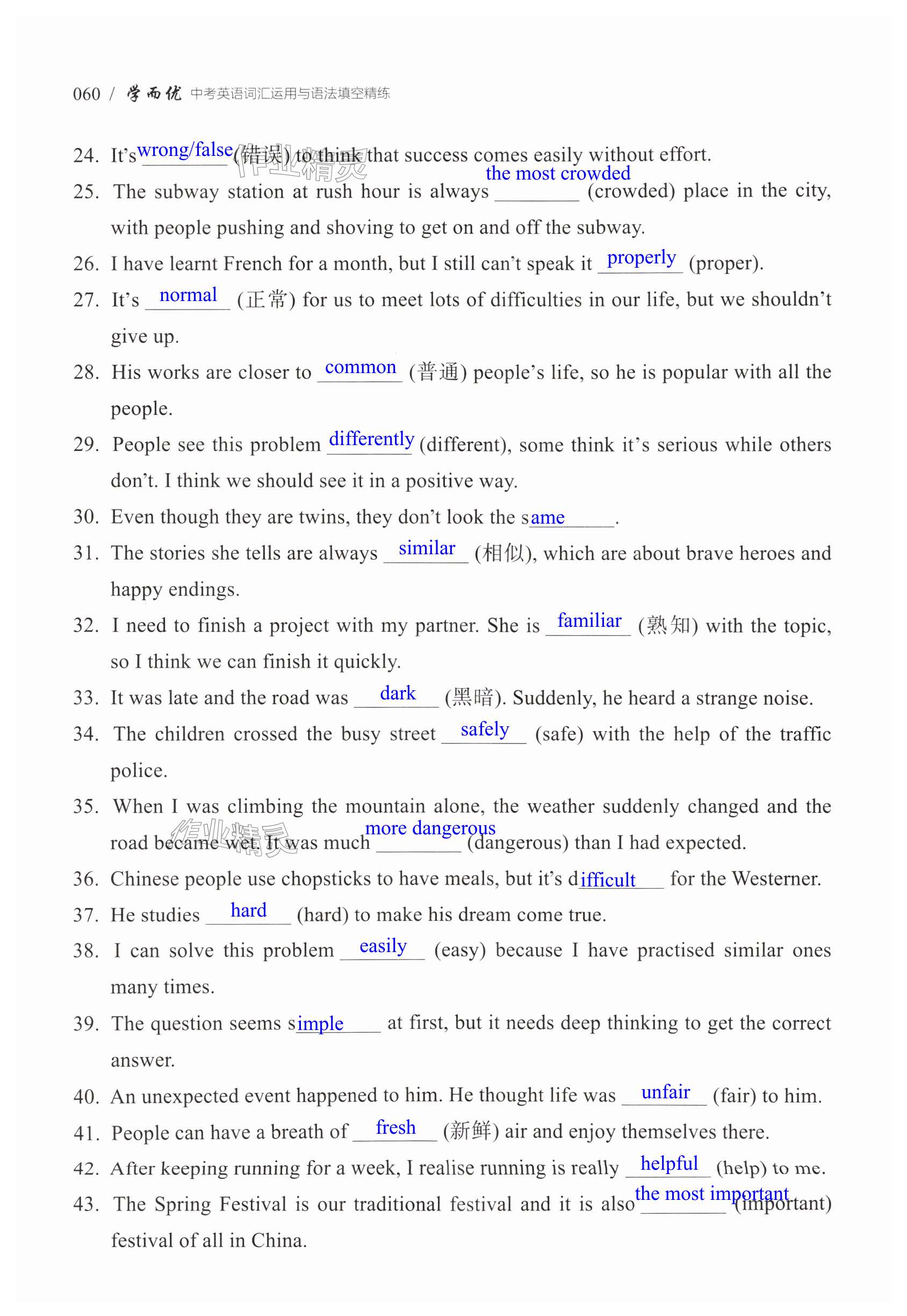 注:目前有些书本章节名称可能整理的还不是很完善,但都是按照顺序排列的,请同学们按照顺序仔细查找。练习册 2025年学而优中考英语词汇运用与语法填空精练 答案主要是用来给同学们做完题方便对答案用的,请勿直接抄袭。