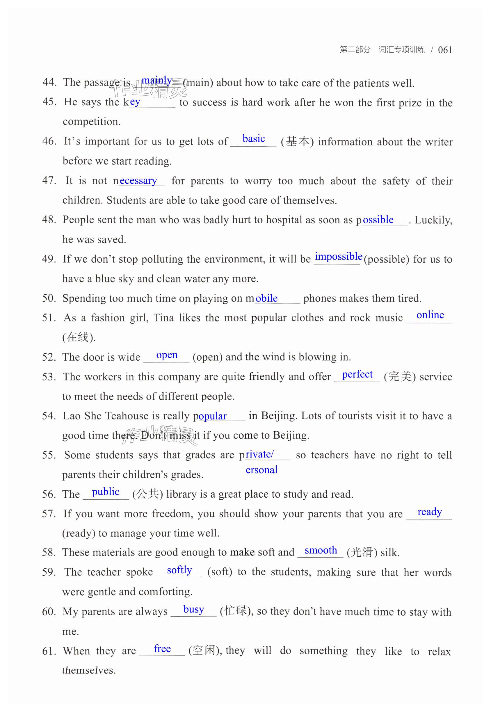 注:目前有些书本章节名称可能整理的还不是很完善,但都是按照顺序排列的,请同学们按照顺序仔细查找。练习册 2025年学而优中考英语词汇运用与语法填空精练 答案主要是用来给同学们做完题方便对答案用的,请勿直接抄袭。