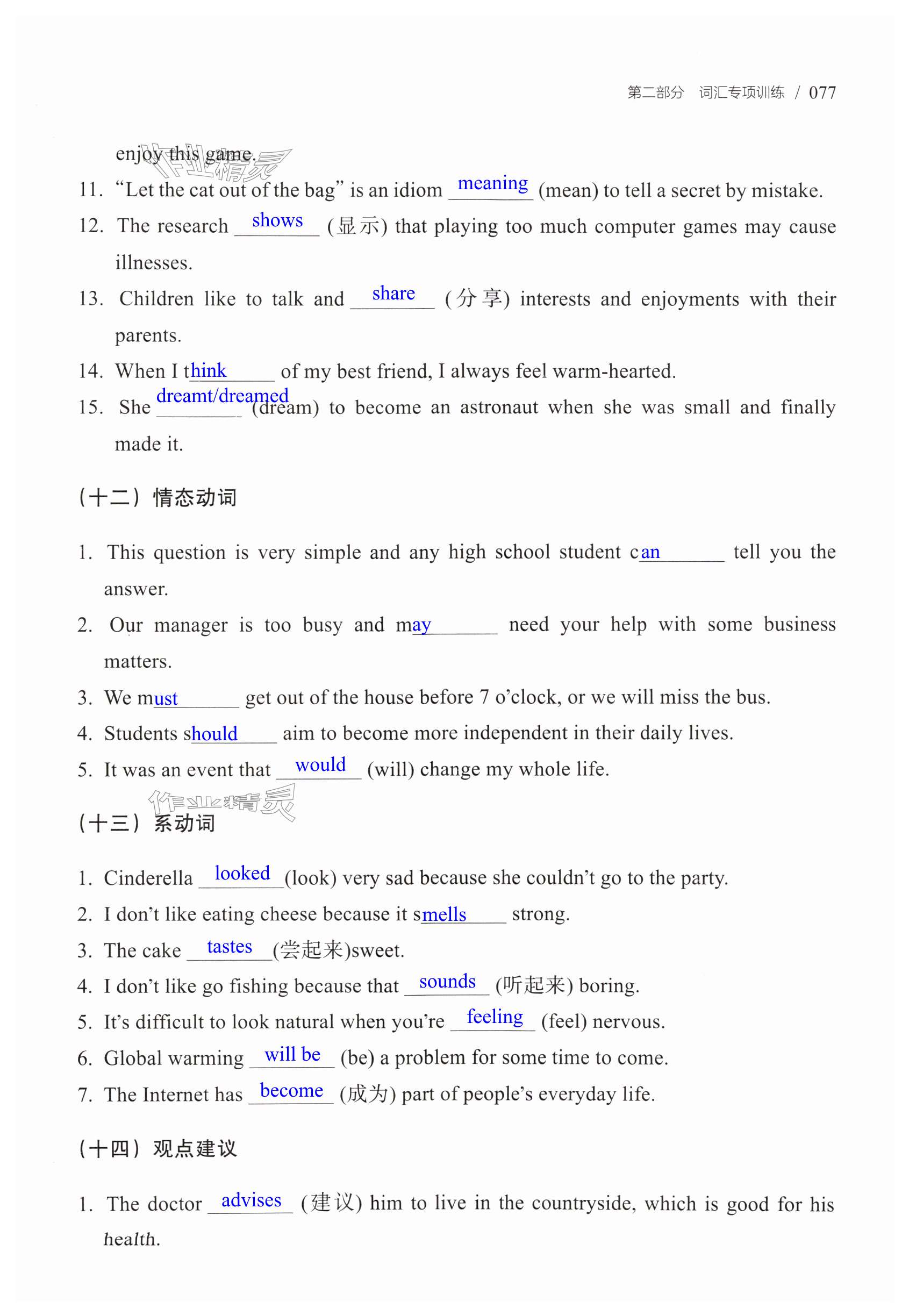 注:目前有些书本章节名称可能整理的还不是很完善,但都是按照顺序排列的,请同学们按照顺序仔细查找。练习册 2025年学而优中考英语词汇运用与语法填空精练 答案主要是用来给同学们做完题方便对答案用的,请勿直接抄袭。