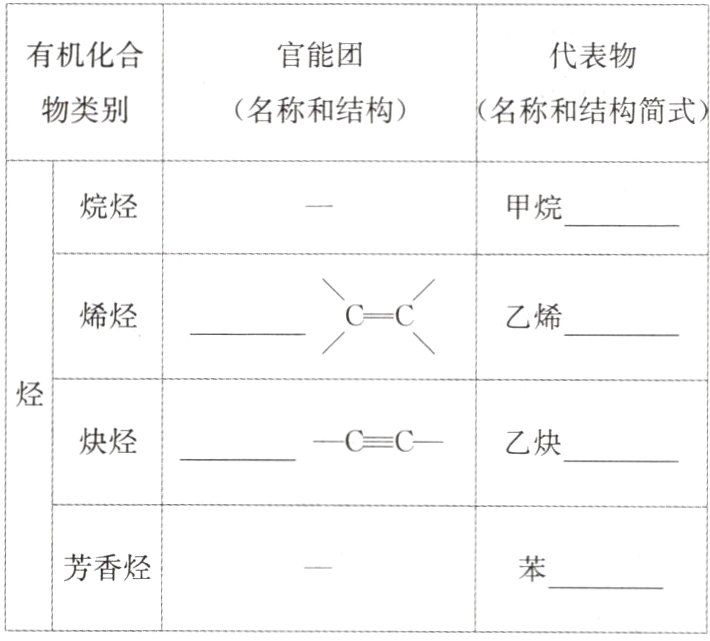 @@①原子或原子团 ②CH₄ 碳碳双键 CH₂=CH₂ 碳碳三键 CH≡CH
