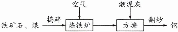 (4)撒入潮泥灰主要作用是________________________。不断翻炒液态生铁,是为了降低________元素的含量。