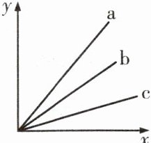5. (郑州模拟)a、b、c分别代表镁、铝、铁三种金属中的一种,它们与酸反应生成氢气的关系图如下,$x$轴表示和酸反应的金属质量,$y$轴表示产生的氢气质量,则下列说法正确的是 ( )