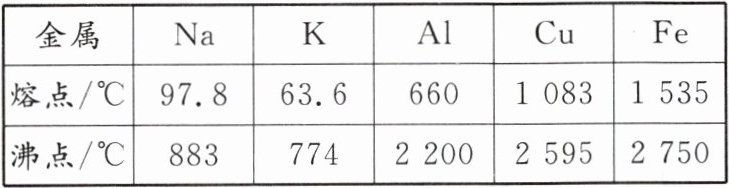 12. 工业生产中常将两种金属放在同一容器中加热使其熔化,冷却后得到具有金属特性的熔化物——合金。试根据下表所列金属的熔点和沸点的数据(其他条件均已满足),判断不能制得的合金是( )
