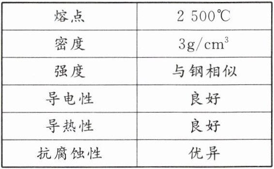 11. 科学家发现一种新金属。根据图表信息推测其用途错误的是( )