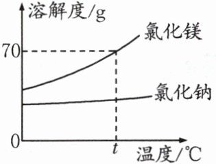 C. t℃时,100g氯化镁饱和溶液中溶解有70g氯化镁