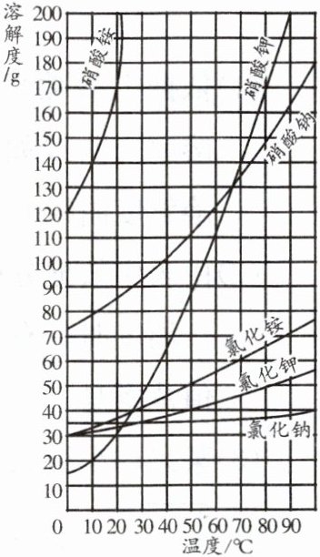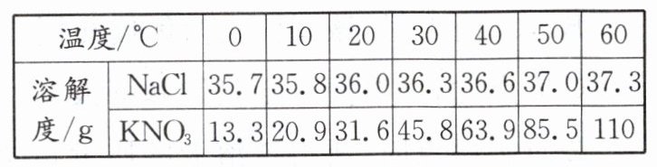 (2)根据绘制的氯化钠和硝酸钾的溶解度曲线判断,温度大约在______℃时,两种物质的溶解度大小相等。