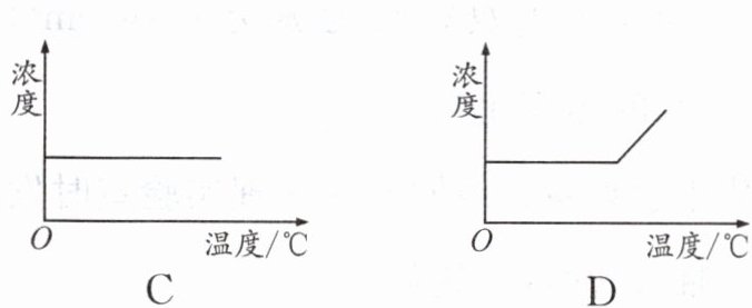 8. 已知KNO₃的溶解度随温度的升高而增大。下列各图是某KNO₃饱和溶液的浓度随温度升高而变化的图像(不考虑溶剂的质量变化),其中正确的是( )