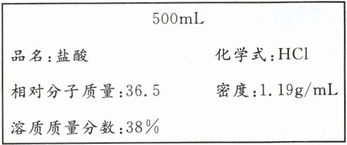 12. 某化学兴趣小组同学在清理实验室时发现一瓶浓盐酸,标签如下。