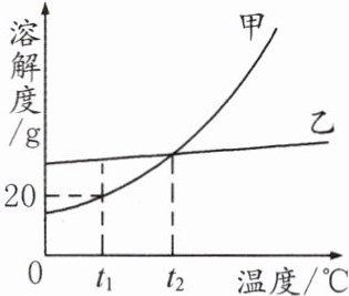 4. 甲、乙两种不含结晶水的固体物质的溶解度曲线如图所示,下列说法正确的是 ( )