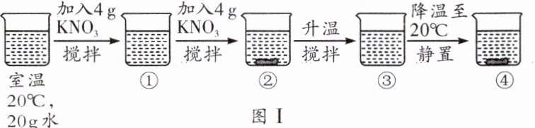 3. (济宁中考)为探究硝酸钾的溶解性,进行了下面实验(见图Ⅰ),结合KNO₃的溶解度曲线(见图Ⅱ)判断,下列说法错误的是 ( )