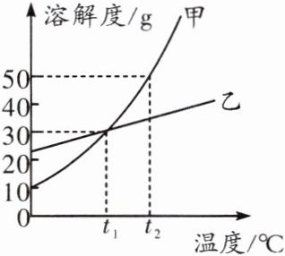 D.将t₁℃时甲、乙两种物质的饱和溶液升温至t₂℃(溶剂量不变),所得溶液溶质质量分数大小关系为甲>乙
