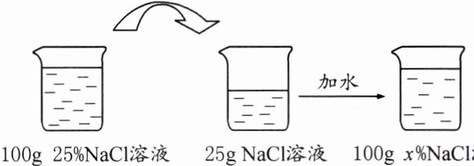 5.100g 25%NaCl溶液如图处理后,所得溶质质量分数为x%,其中x的值是 ( )