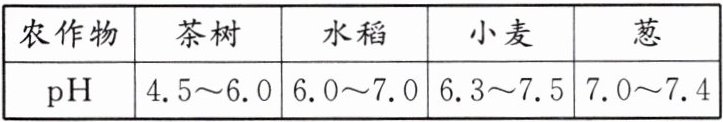 7.(2024宁夏)几种农作物适宜生长的土壤的pH范围如表,某地区土壤呈弱碱性,最不适宜种植的是 ( )