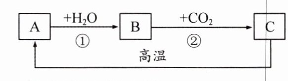 10. A、B、C是三种常见的含钙化合物。它们之间有如图所示的转化关系(部分产物略去):+H①O B高温