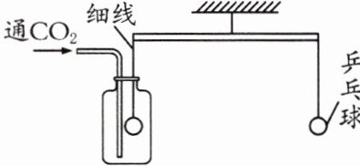 C.倒人浓$NaOH$溶液后,二氧化碳被吸收,杠杆逐渐恢复原状,故正确;D.其他条件不变,氢气的密度比空气的小,且不与氢氧化钠溶液反应,将$CO_{2}$换成$H_{2}$不会产生相同现象,故错误。