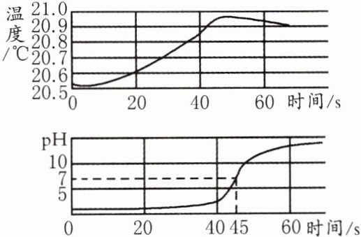 3. (2024新疆)用数字传感器探究稀盐酸与稀氢氧化钠溶液反应过程中温度和$\mathrm{pH}$的变化,测定结果如图所示。下列说法正确的是( )