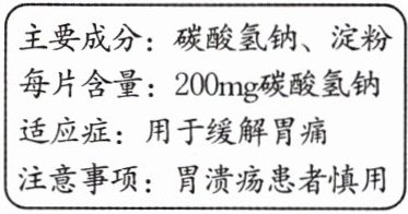 16.(2022河南)下图是某胃药标签的部分文字说明。碳酸氢钠与胃酸(含盐酸)作用的化学方程式为____________________;如果将该胃药中的碳酸氢钠用相同质量的碳酸镁代替,则每次用药量应__________(填“增加”“减少”或“不变”)。