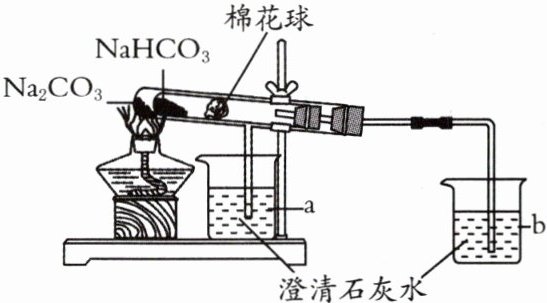 15. 实操情境家庭生活中制作食品经常用到碳酸钠(苏打)和碳酸氢钠(小苏打),碳酸氢钠不稳定,在潮湿的空气中缓慢分解,受热至65℃以上迅速分解,270℃时完全分解为碳酸钠。某同学为探究它们的性质差异,设计了如图所示装置进行实验。请回答下列问题: